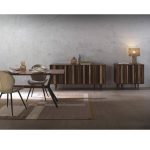 Por su estética equilibrada entre lo natural y lo industrial, esta composición resulta muy adecuada para espacios domésticos donde se busca crear una atmósfera envolvente y con personalidad. Puede integrarse con textiles en tonos neutros, iluminación en metal oscuro, fibras naturales o piezas cerámicas para reforzar un ambiente sereno, elegante y vivido. Su presencia funciona especialmente bien en comedores abiertos al salón, donde ayuda a dar continuidad visual y a definir el estilo del conjunto.