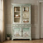 Esta composición está elaborada en madera maciza de acacia en tono nogal y se completa con herrajes en tono negro envejecido. Su estructura de madera natural envejecida refuerza el aspecto auténtico del conjunto y subraya su carácter decorativo. Está diseñada para interior, especialmente para comedor y salón, y no requiere montaje.