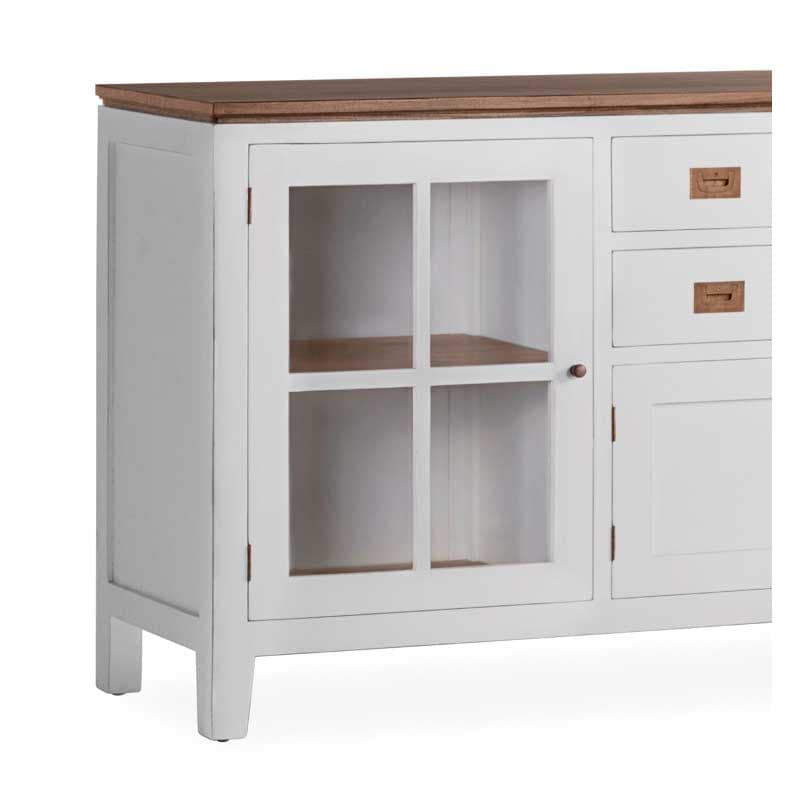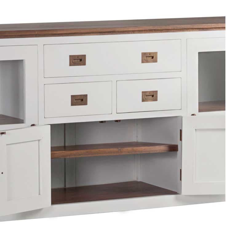 Aparador fabricado artesanalmente en madera maciza de mindi, con acabados lacado blanco y nogal.