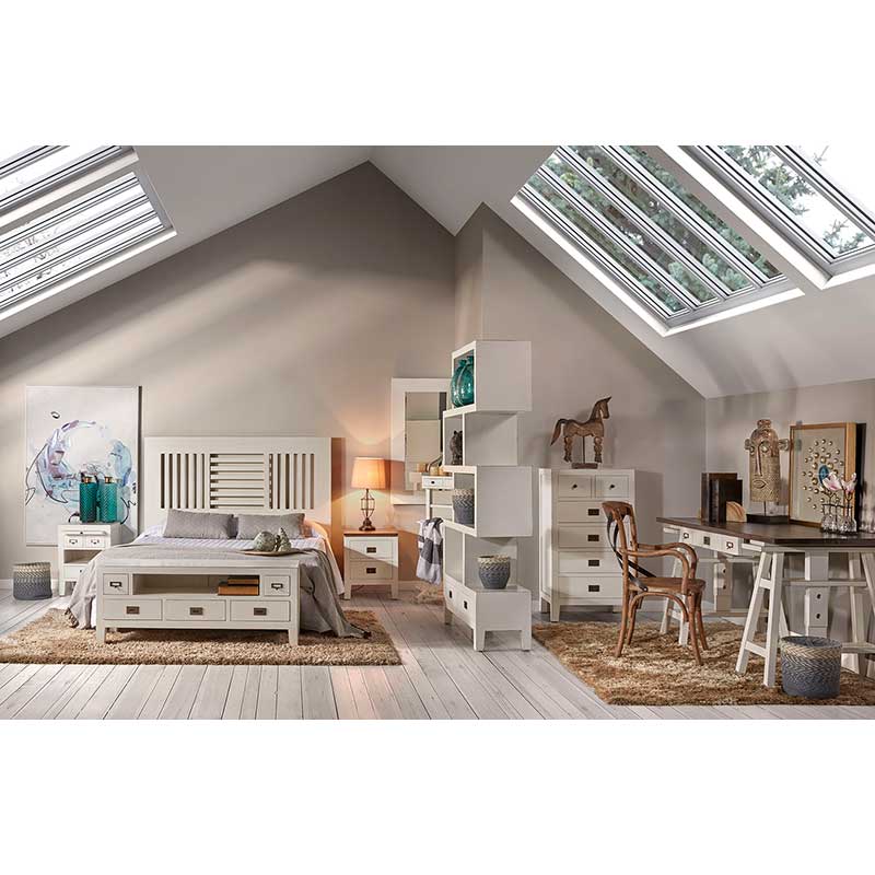 Cabezal, fabricado con madera maciza de mindi y acabado en lacado color blanco.