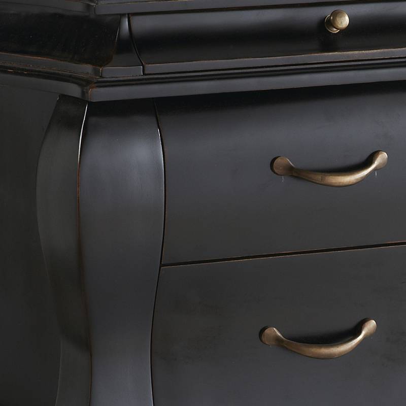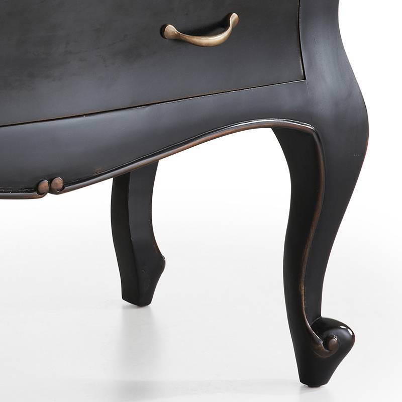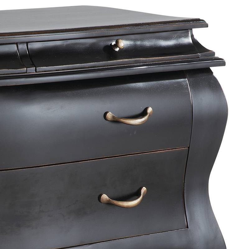 Fabricada con madera maciza de caoba y lacada en color negro.