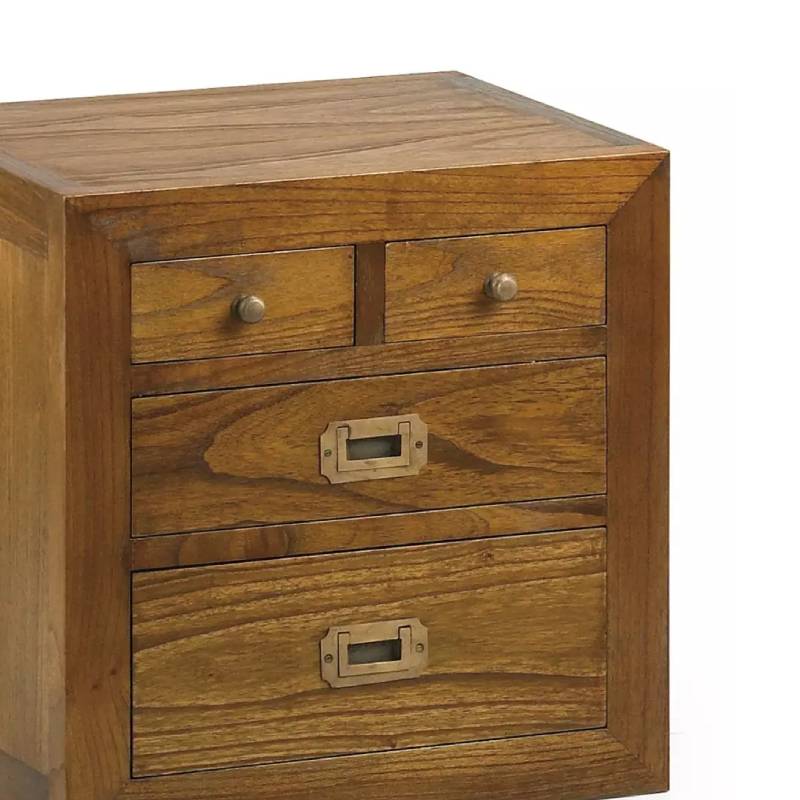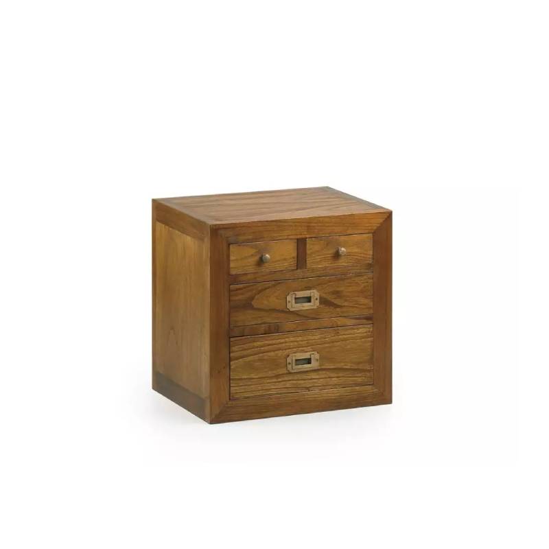 Módulo cajonera de la colección Star- Combi. Está fabricada artesanalmente en madera de mindi maciza en tono natural y herrajes en tono bronce. Cuenta con 2 cajones inferiores y 2 cajones mini . Incluye un juego de 4 patas . Ideal para combinar con otros módulos de la colección y diseñar tu propia librería, o como mueble individual.