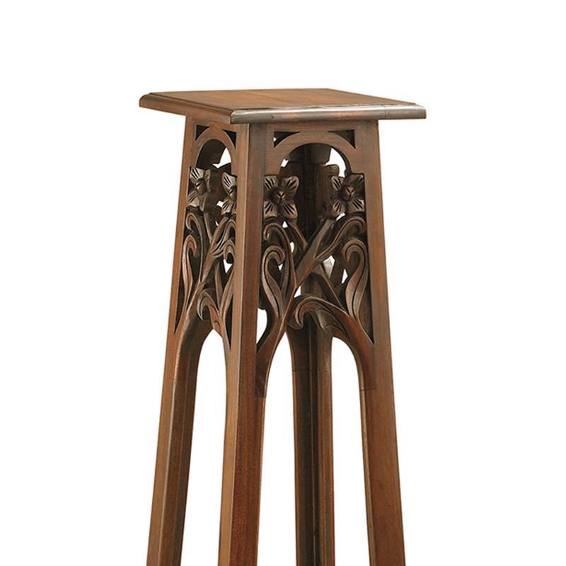 Fabricado artesanalmente con madera maciza de caoba en color nogal.