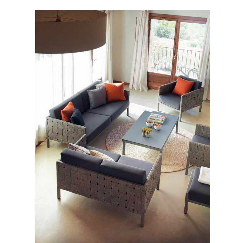 Sillón de 1 plaza para exterior, fabricado con estructura de aluminio alta calidad y revestido de fibra fifertex en color gris.